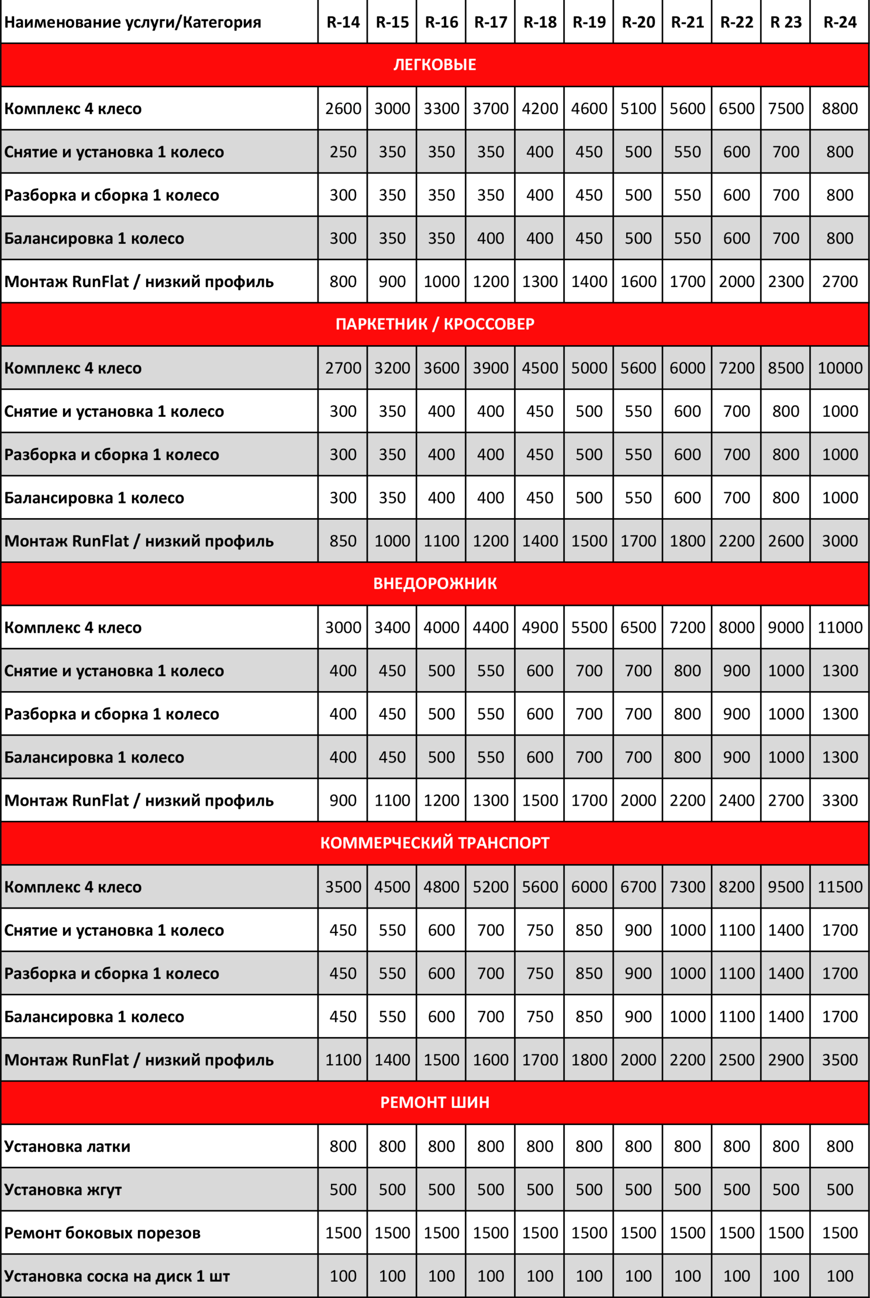 Комплекс 4 колеса. Снятие, установка колес, балансировка, ремонт шины и др.